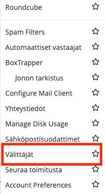 Välittäjät -sivulla voit poistaa uudelleenohjauksen käytöstä 'Sähköpostin välittäjät' osiosta: